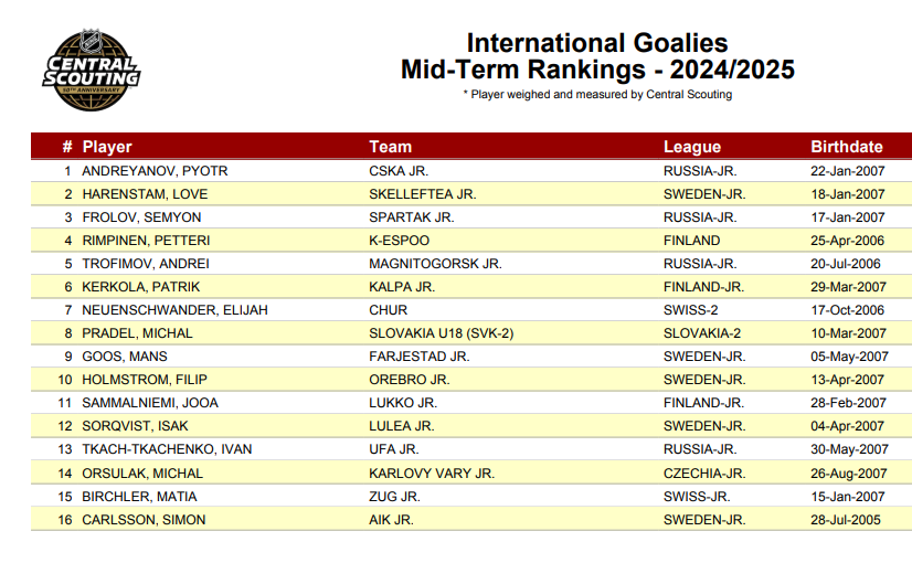 With the IIHF under-18 world championships now concluded and the NHL draft lottery results known, it`s time to present the latest ranking board for the 2025 NHL Entry Draft scheduled for June.